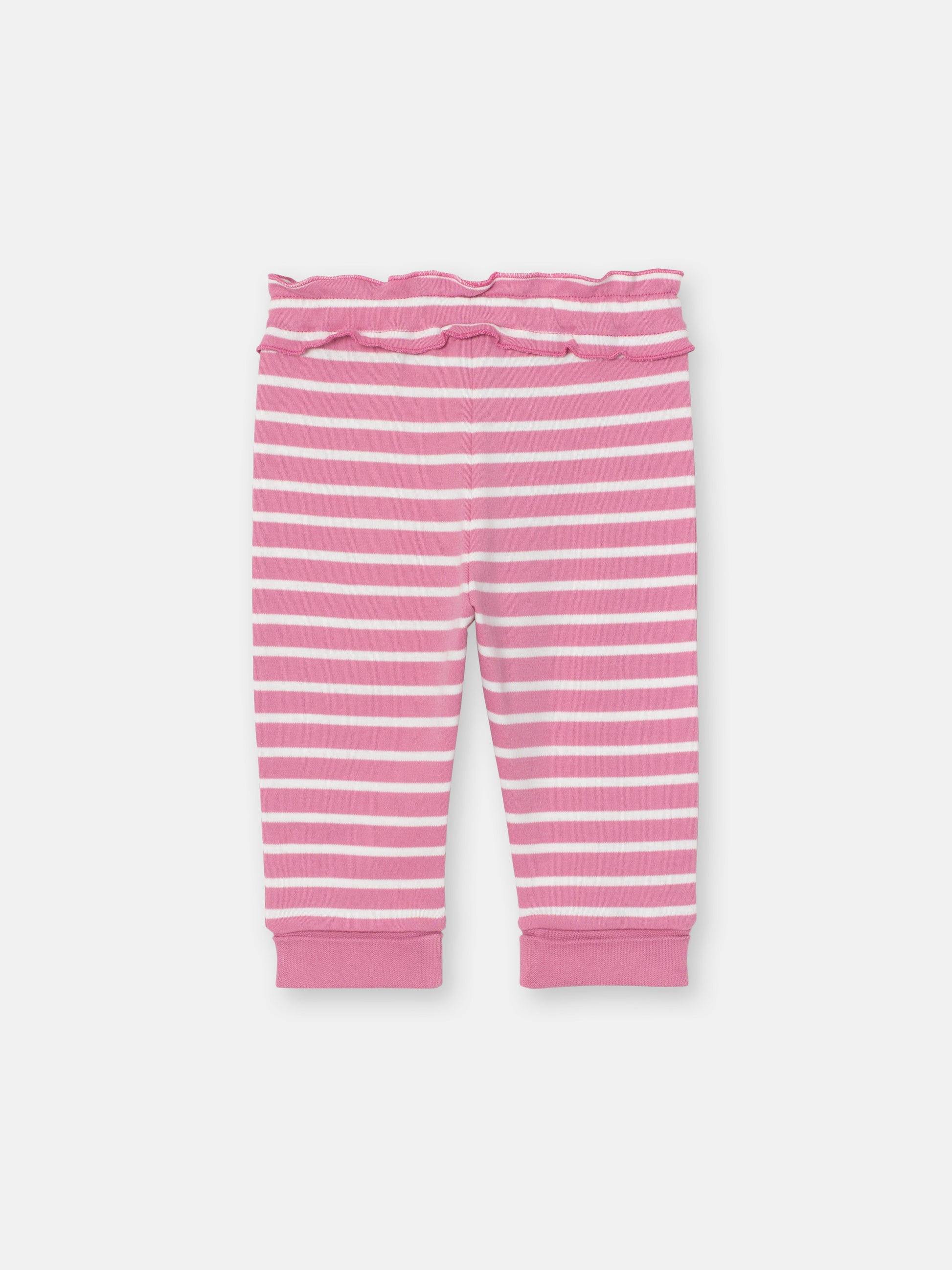 Ruffle Waistband Pants with Adjustable Cuffs in (Mini Stripe) Pattern - Raspberry